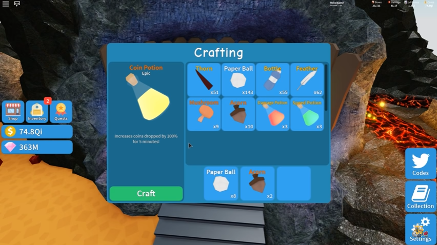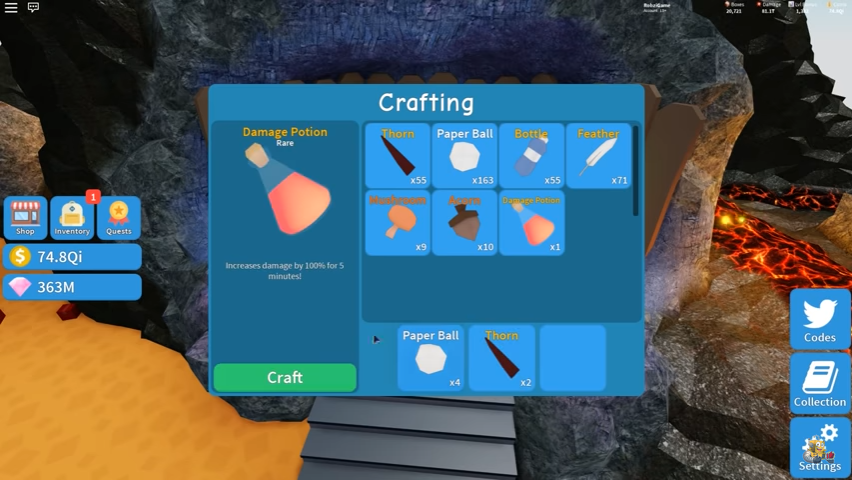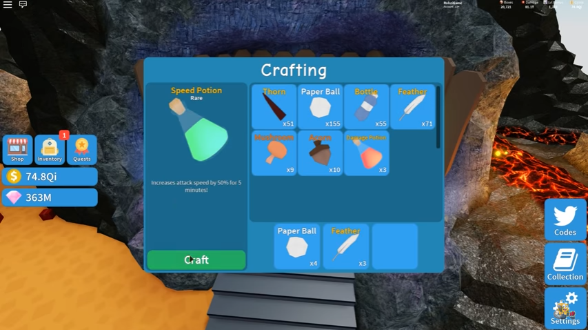 Уважаемые посетители, здесь вы узнаете про крафт зелий в Unboxing Simulator. Симулятор распоковки — это увлекательная игра в роблокс, где вам необходимо открывать подарки, сундуки. В игре всего 3 вида крафта: Урон, скорость атаки, двойные коины.