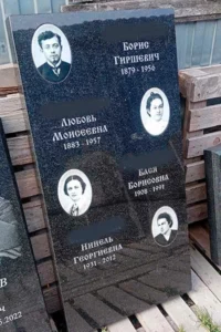 В случае семейных памятников на одной стеле могут быть выгравированы имена и даты жизни супругов или целой семьи, что делает памятник местом памяти для нескольких поколений. Также, на вертикальных памятниках могут быть размещены отдельные таблички или добавлены дополнительные элементы для каждого члена семьи, если это позволяет дизайн и размер памятника.
